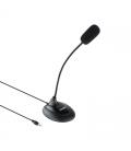 | Características | - Micrófono flexible con espuma - Interruptor ON/OFF - Base antideslizante - Sensibilidad: -45±3db - Impedancia: ≤ 2.2k ? - Frecuencia: 100-16KHz - Tipo de dirección: Omnidireccional - Conexión: Jack 3.5 mm - Longitud del cable: 2 metros - Altura máxima del micrófono: 325mm - Color: Negro - Peso neto: 150 gr Contenido - 1 x Micrófono - 1 x Espuma |