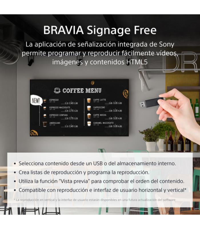 La pantalla profesional Sony BRAVIA EZ20L de 43" está diseñada para entornos comerciales que requieren calidad 4K UHD, fiabilidad continua y gestión avanzada de contenidos. Con panel IPS, sistema operativo Android TV y compatibilidad con señalización digital, es una solución versátil para comercios, recepciones, salas de reuniones o espacios públicos. Su diseño permite uso vertical u horizontal, con un consumo eficiente y funciones pensadas para el control profesional.