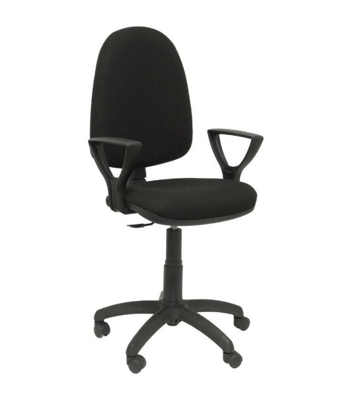 Silla de oficina Aýna con mecanismo Contacto permanente básico tapizada con Tela color Negro. Equipada con Base poliamida negra, Brazos fijos y Ruedas de nailon 50 mm