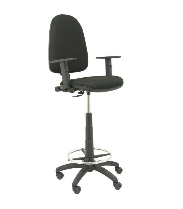 Taburete Aýna con mecanismo Contacto permanente básico tapizada con Tela color Negro. Equipado con Base poliamida negra, Brazos 1D y Ruedas de nailon 50 mm