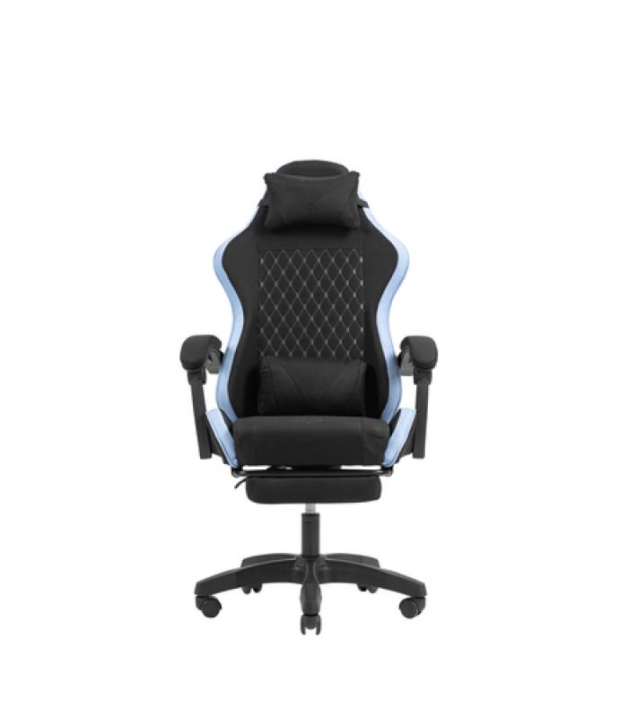 Su estética gaming en negro y azul aporta un toque moderno y profesional, mientras que su acabado en tela con espuma y nylon ofrece una gran transpirabilidad y resistencia al uso intensivo diario.