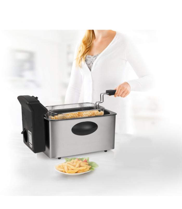 Además de su elegante diseño de acero inoxidable, cuenta con 2000 W de potencia que permiten calentar el aceite en un santiamén. Y tiene 4 litros de capacidad, por lo que es ideal para preparar «snacks» para una fiesta o para toda la familia.