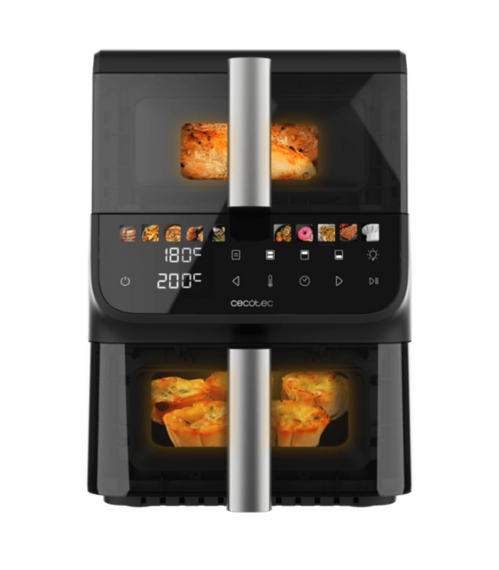 Capacidad profesional y doble cocción independiente. La Cecofry DuoLevel 10000 DuoSize Window está diseñada para usuarios exigentes que buscan eficiencia y versatilidad. Sus 10 litros de capacidad se distribuyen en dos cubetas superpuestas (3,5 L y 6,5 L), permitiendo cocinar simultáneamente dos platos distintos con control individual de tiempo y temperatura. El diseño vertical reduce hasta un 44 % el espacio ocupado en la encimera, ideal para cocinas profesionales o familias numerosas.