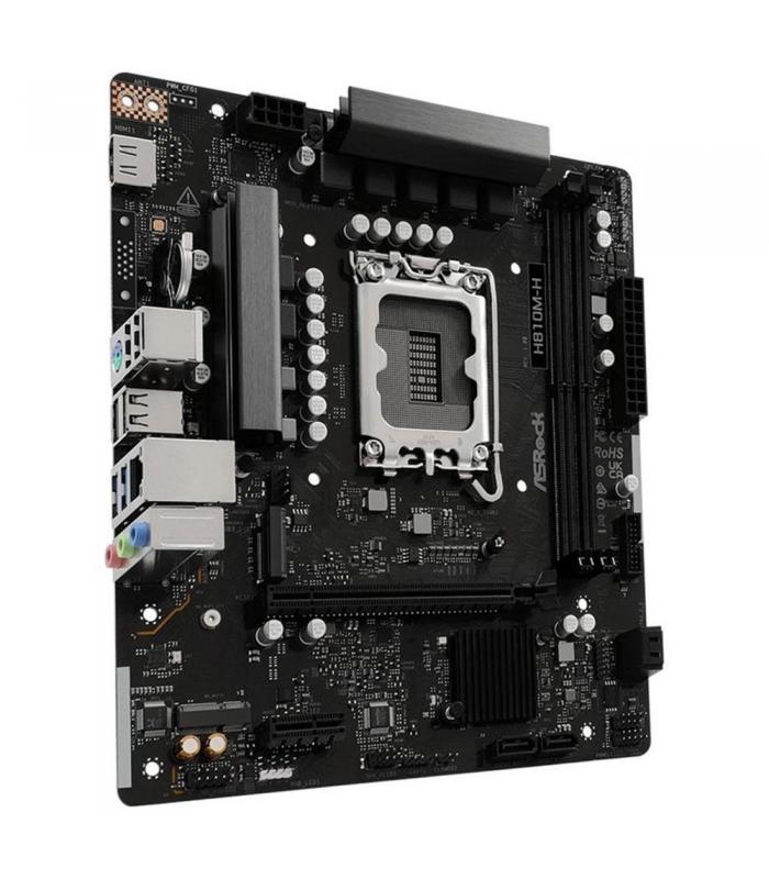 La **placa base ASRock H810M-H con socket LGA1851** está pensada para usuarios que buscan una solución fiable y moderna para montar un PC de escritorio eficiente, compatible con los nuevos procesadores **Intel® Core™ Ultra Series 2**. Con soporte para **memoria DDR5**, conectividad PCIe 4.0 y doble ranura M.2, esta placa micro ATX ofrece una excelente base para sistemas de trabajo, estudio o uso general, con opciones de ampliación y rendimiento a la altura de las necesidades actuales.