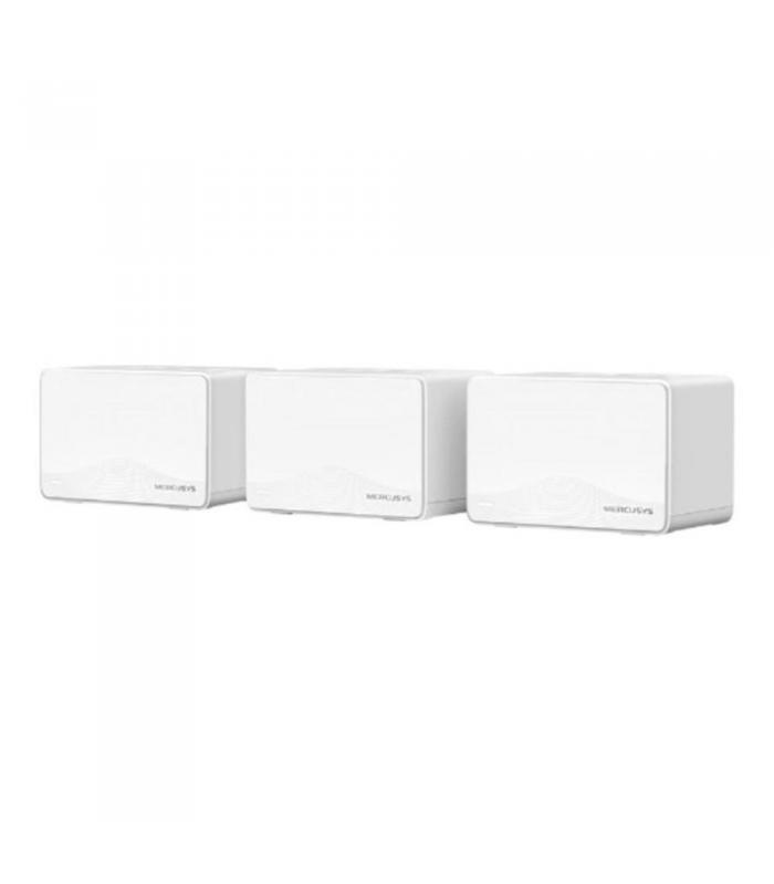 El **Mercusys Halo H27BE** es un sistema de malla Wi-Fi 7 pensado para ofrecer **conectividad ultrarrápida, estable y sin interrupciones** en hogares y oficinas de gran superficie. Con una cobertura de hasta **650 m²** y soporte para hasta **150 dispositivos conectados**, este pack de tres nodos es ideal para quienes buscan **velocidad, rendimiento y compatibilidad con los estándares más avanzados**, todo con un diseño discreto y elegante en color blanco.