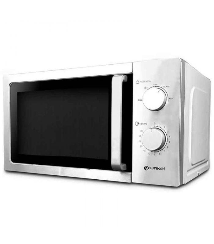 Microondas de GRUNKEL MW-20INOX, 20 L, 700W, 5 niveles, 4 modos combinados, descongelar, temporizador 30 min, plato 255 mm, acabado acero inoxidable.