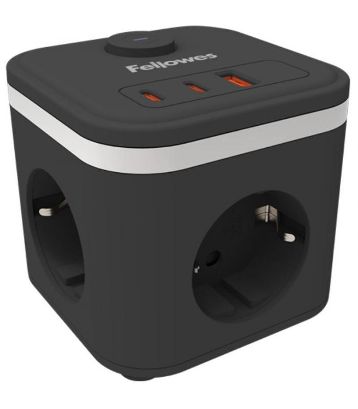 Regleta con interruptor fellowes/ 3 tomas de corriente/ 1 usb - 2 usb tipo-c/ cable 2m/ negra