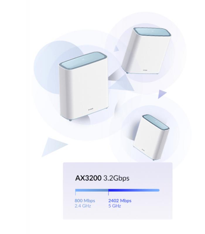 D-Link EAGLE PRO AI AX3200, Blanco, Interno, Sistema de malla, Poder, Estado, 740 m², 0 - 40 °C