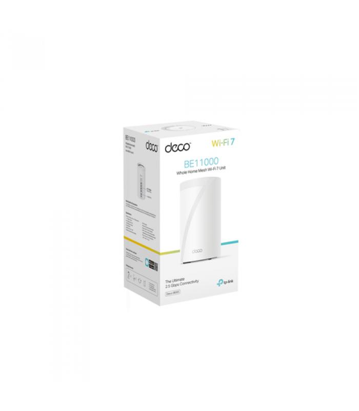 TP-Link Deco BE65. Color del producto: Blanco, Tipo de antena: Interno, Tipo de producto: Sistema de malla. Banda Wi-Fi: Tribanda (2.4 GHz / 5 GHz / 6 GHz), Estándar Wi-Fi: Wi-Fi 7 (802.11be), Tasa de transferencia de datos WLAN (máx.): 11000 Mbit/s. Asistente virtual: Amazon Alexa & Google Assistant, Compatible con servicios en la nube: TP-Link ID, Prestaciones de control parental: Hora de dormir, Perfiles personalizados, Family online time ranking, Tiempo en familia, Off time,.... Certificación: CE, FCC, RoHS. Ancho: 107,5 mm, Profundidad: 107,5 mm, Altura: 176 mm