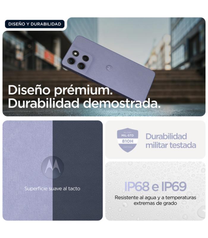 Motorola moto g86 5G . Diagonal de la pantalla: 16,9 cm (6.67"), Resolución de la pantalla: 2712 x 1220 Pixeles. Familia de procesador: MediaTek Dimensity, Modelo del procesador: 7300. Capacidad de RAM: 8 GB, Capacidad de almacenamiento interno: 256 GB. Resolución de la cámara trasera (numérica): 50 MP, Tipo de cámara trasera: Cámara doble. Capacidad de la tarjeta SIM: SIM doble. Sistema operativo instalado: Android 15. Capacidad de batería: 5200 mAh. Color del producto: Lila. Peso: 185 g