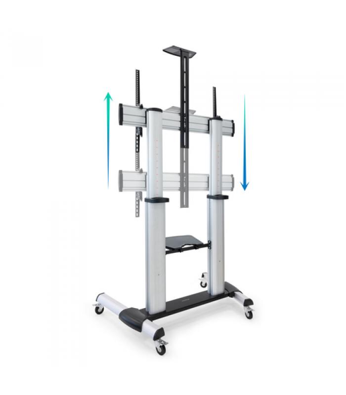 TooQ Partenón. Capacidad máxima de peso: 100 kg, Tamaño mínimo de pantalla: 152,4 cm (60"), Tamaño máximo de pantalla: 2,54 m (100"), Compatibilidad con interfaz de montaje (min): 200 x 200 mm, Compatibilidad con interfaz de montaje (max): 1000 x 600 mm. Rango de ajustes de altura: 1200 - 1650 mm, Ángulo de inclinación: -10 - 5°. Color del producto: Plata