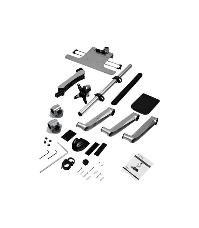 Incluye soportes, brazos giratorios, reposamuñecas y bandeja de teclado