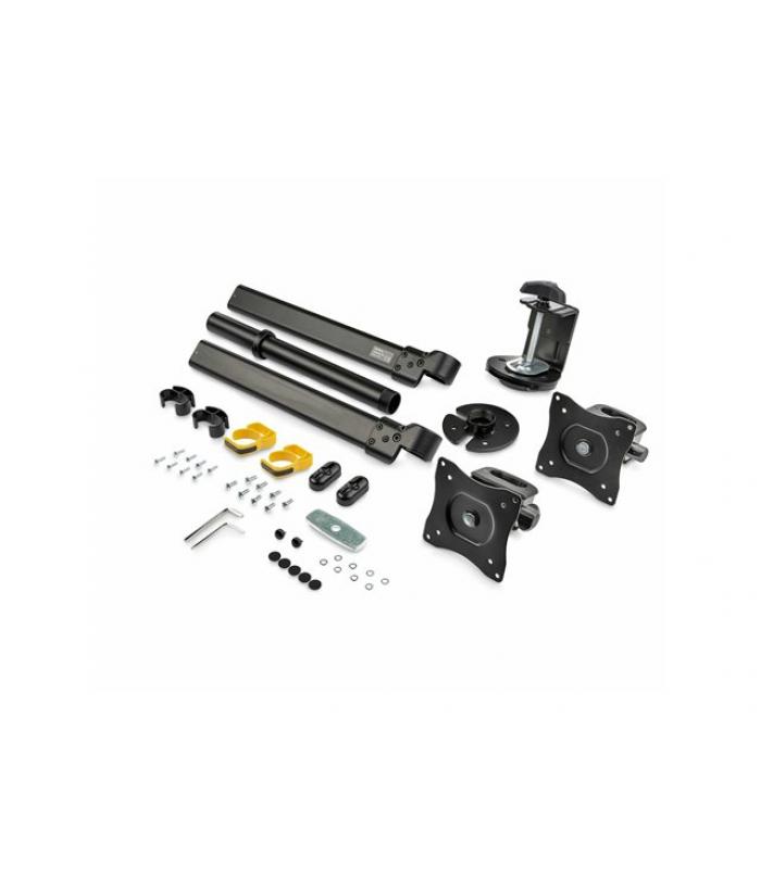 Contenido del paquete: soportes VESA, brazos, columna, herramientas, tornillería y organizadores de cables
