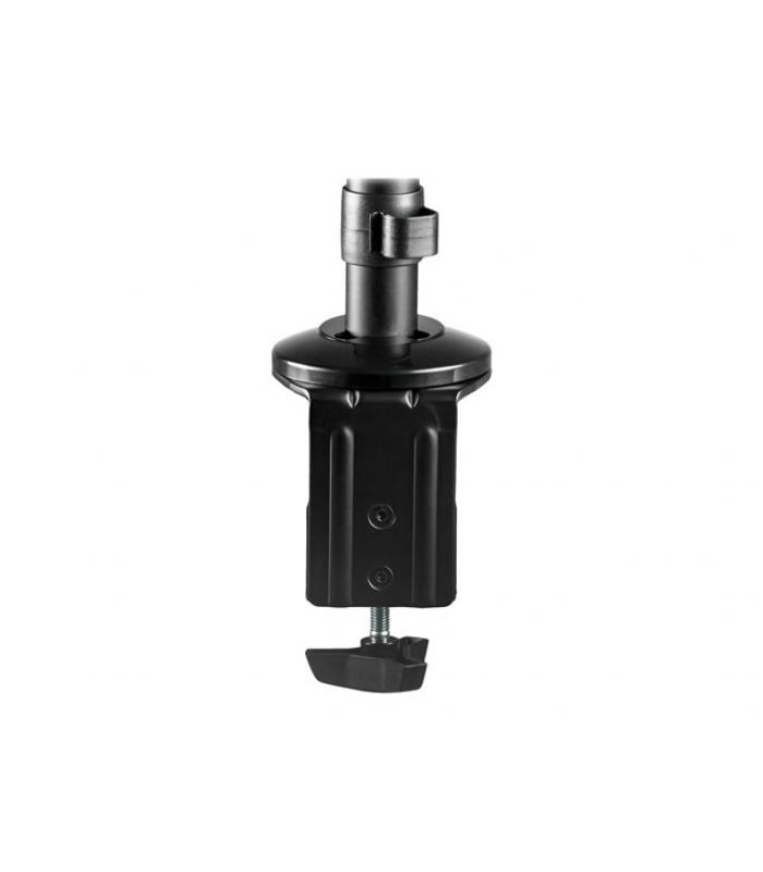 El sistema de montaje ofrece dos opciones: mordaza de escritorio o instalación mediante ojal, lo que facilita su adaptación a distintos tipos de mesas. Incluye todos los accesorios necesarios para un montaje sencillo.