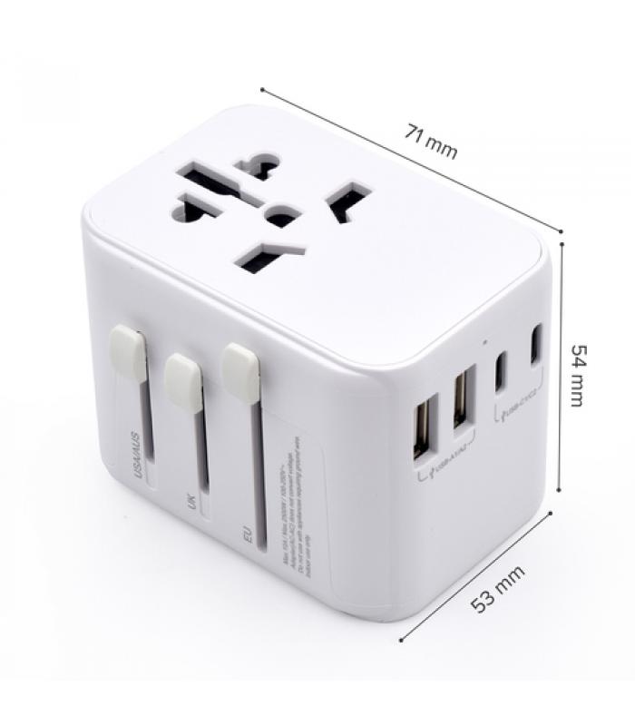 Este producto es la herramienta ideal para cargar sus dispositivos eléctricos en más de 224 países diferentes. El adaptador está equipado con 4 enchufes de pared diferentes (retráctiles), compatibles con EE. UU., Reino Unido, Europa, Asia, Australia y Nueva Zelanda. Con 3 deslizadores para cambiar diferentes enchufes. Un adaptador universal, es la herramienta ideal para cargar sus dispositivos eléctricos en más de 224 países diferentes. Ideal para viajar, gracias a su diseño compacto y versátil, peso ligero y tamaño reducido. Los enchufes de entrada se pueden usar simultáneamente: puede cargar hasta 6 dispositivos al mismo tiempo. En cambio, solo puede usar un enchufe de pared a la vez. Compatible con todos los teléfonos inteligentes/tabletas, cámaras digitales, reproductores de MP3, computadoras portátiles, GPS, planchas de viaje pequeñas y secadores de cabello. Luz indicadora LED. 1 fusible de repuesto.