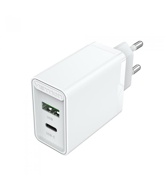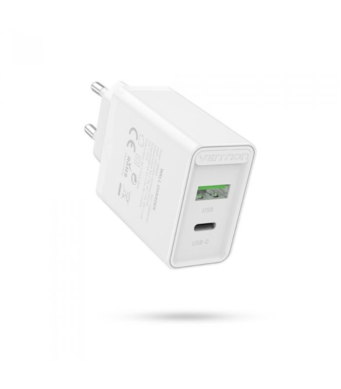 VENTION - Cargador de Pared Vention FBBW0-EU/ 1x USB Tipo-C/ 1x USB/ 20W