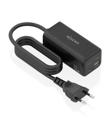AISENS - CARGADOR SOBREMESA GaN 100W, 3xUSB-C PD3.0 QC4.0 QC5.0, 1xUSB-A QC3.0, NEGRO