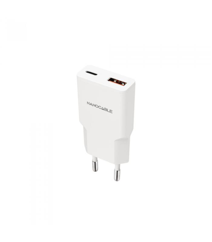 Cargador de 25W con salida USB-C PD + USB-A QC