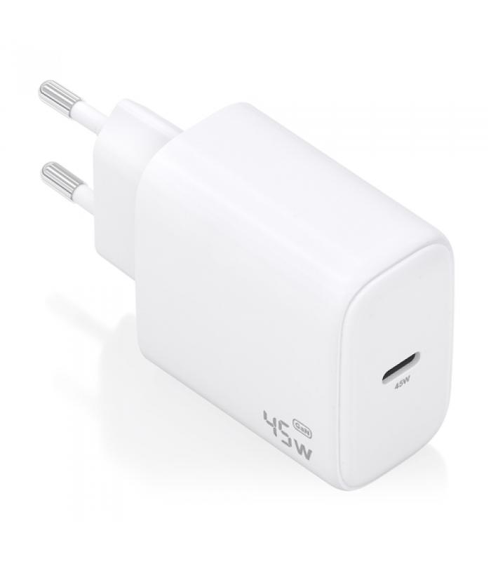 Cargador GaN USB-C 45W para cargar portátiles, móviles, cámaras y tablets etc. Diseño muy elegante, moderno y práctico.