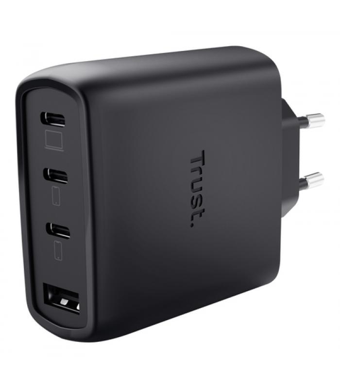 Cómodo cargador USB GAN de 65 W con 4 puertos para cargar cuatro dispositivos a la vez.