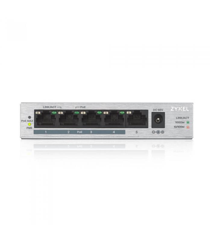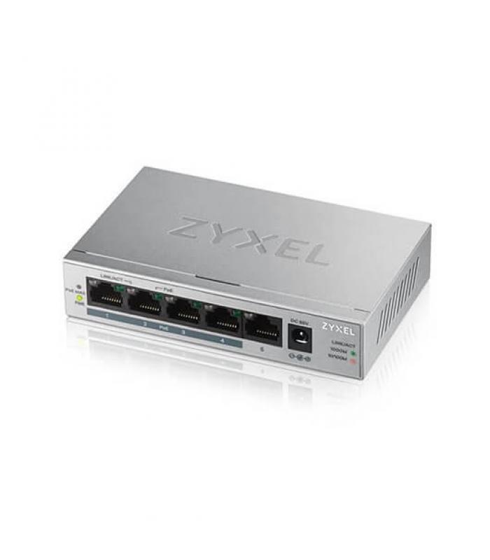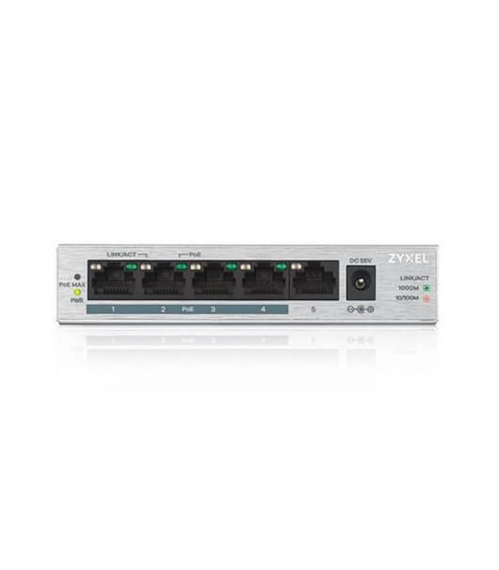 HUB SWITCH 5 PTOS ZYXEL 10 100 1000 GS1005-HP PLATA HUB SWITCH 5 PTOS ZYXEL 10 100 1000 GS1005-HP PLAT 5PTOS RJ-45 NO GESTIONABLE POE FULL DUPLEX GS1005HP-EU0101F