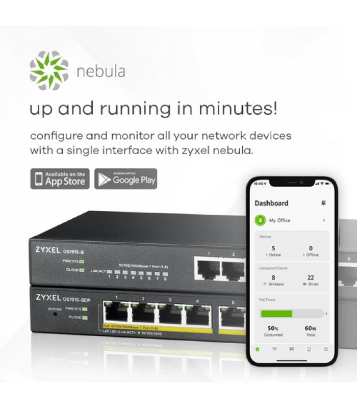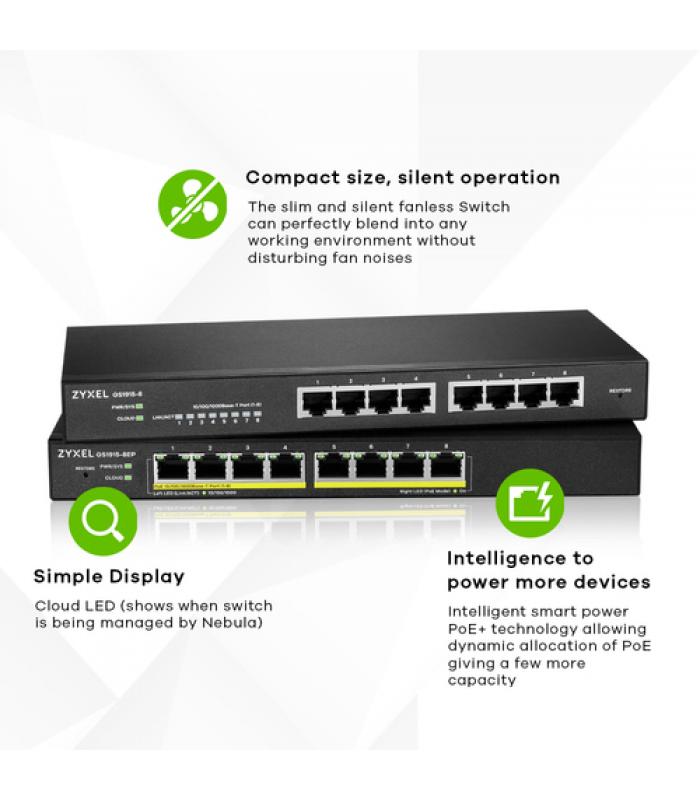 Switches y Puntos acceso - Switches sobremesa - ZyXEL - Zyxel gs1915-8 smart switch 8xgbe nebula fanless