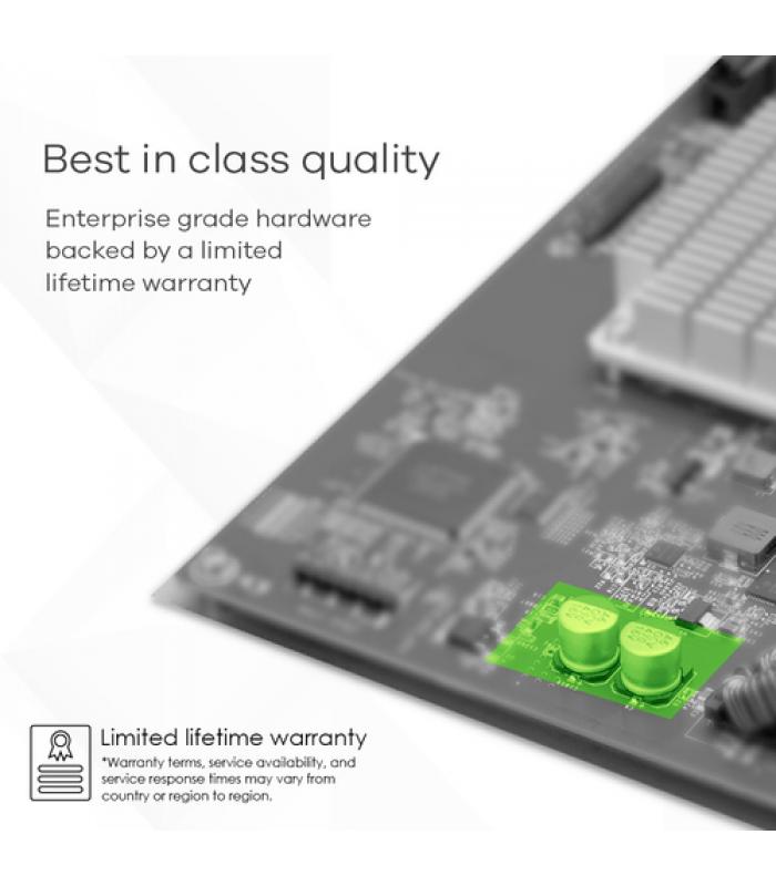 | Otras características | - Dimensiones (An x Prof x Al): 250 x 104 x 27 - Peso: 0,62 kg Medioambiente - Temperatura de funcionamiento: 0 °C a 40 °C - Humedad de funcionamiento: 10 % a 95 % (sin condensación) - Temperatura de almacenamiento: -40 °C a 70 °C - Humedad de almacenamiento: 10 % a 95 % (sin condensación) - Disipación de calor (BTU/h): 16,03 - MTBF (h): 1,144,461 Requisitos de energía - Voltaje de entrada de CA: 100 - 240 V AC, 50/60 Hz - Consumo máximo de energía: 72 W Accesorios - Adaptador de corriente - Juego de montaje en pared |
