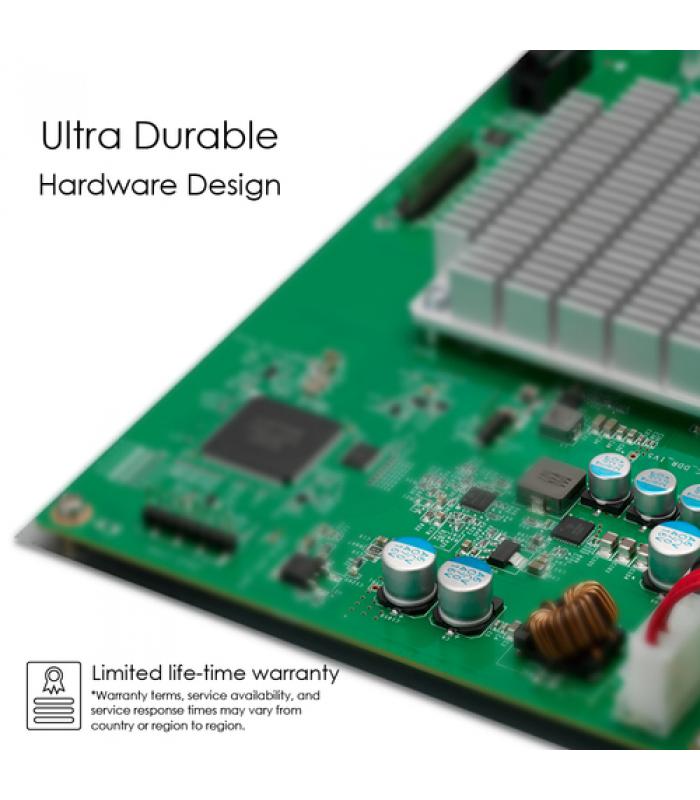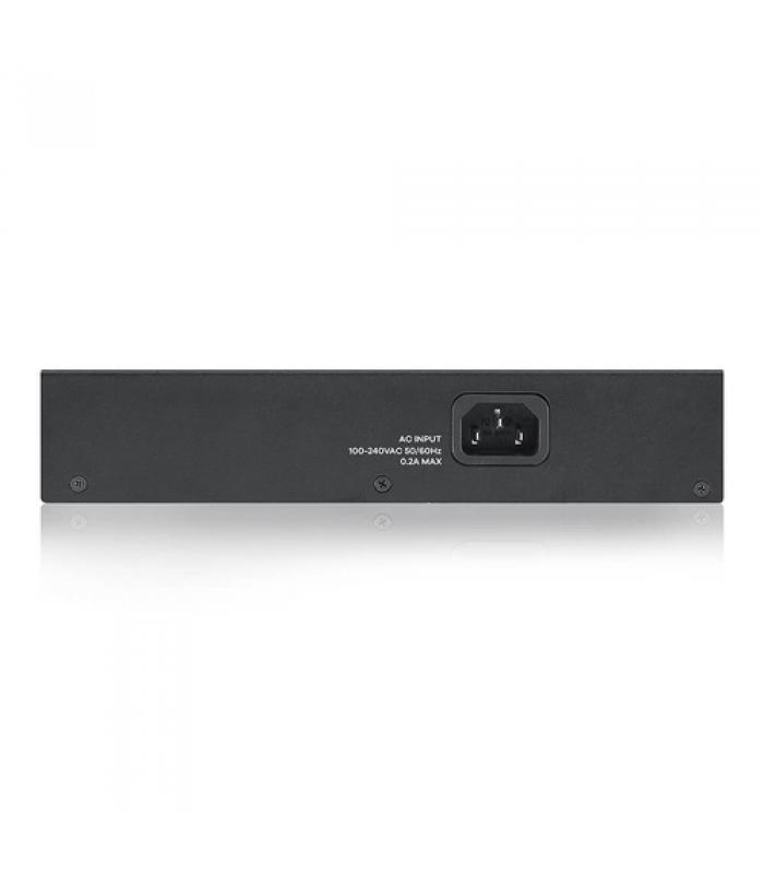 El switch funciona mediante alimentación AC con fuente incluida y presenta un bajo consumo energético de solo 10 W, lo que permite mantener la red activa de forma continua sin un impacto significativo en el consumo eléctrico.