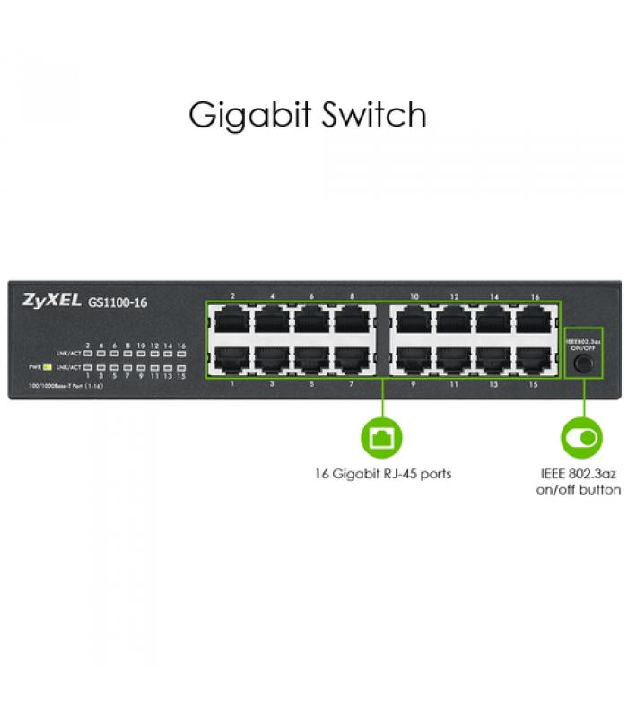 El switch Zyxel GS1100-16-EU010 es una solución de red fiable y eficiente diseñada para ampliar la conectividad en entornos domésticos y profesionales. Gracias a sus 16 puertos Gigabit Ethernet, permite conectar múltiples dispositivos con una transferencia de datos rápida y estable. Su funcionamiento unmanaged facilita una instalación sencilla sin configuraciones complejas, lo que lo convierte en una opción ideal para oficinas, pequeñas empresas o usuarios que necesitan ampliar su red de forma inmediata.