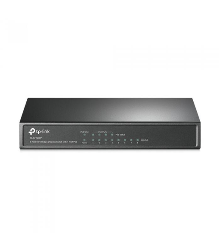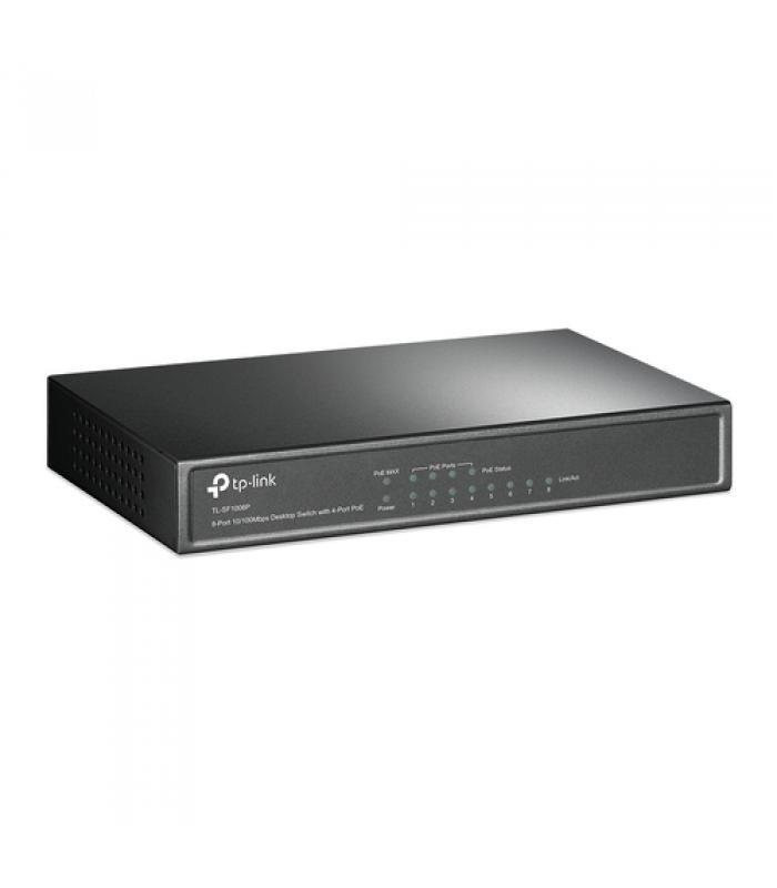 El TL-SF1008P es un switch no gestionable de 8 puertos 10 / 100Mbps que no requiere configuración y ofrece 4 puertos PoE (Alimentación sobre Ethernet). Puede detectar automáticamente y suministrar energía a todos los dispositivos de potencia (PDs) que cumplan con IEEE 802.3af. En esta situación, la energía eléctrica se transmite junto con los datos en un único cable que le permite ampliar su red hacia donde no hay enchufes, donde desea fijar los dispositivos tales como puntos de acceso, cámaras IP, teléfonos IP, etc.
