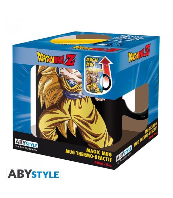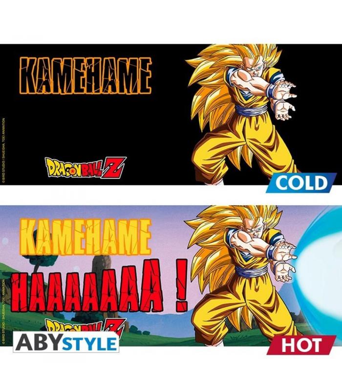 goku - transformado en su forma más poderosa - el super saiyan 3 - lanza su famoso kamehameha en esta taza dragon ball z de abystyle. ¡¡¡descubre nuestra gama de tazas termocambiables!!!!!
