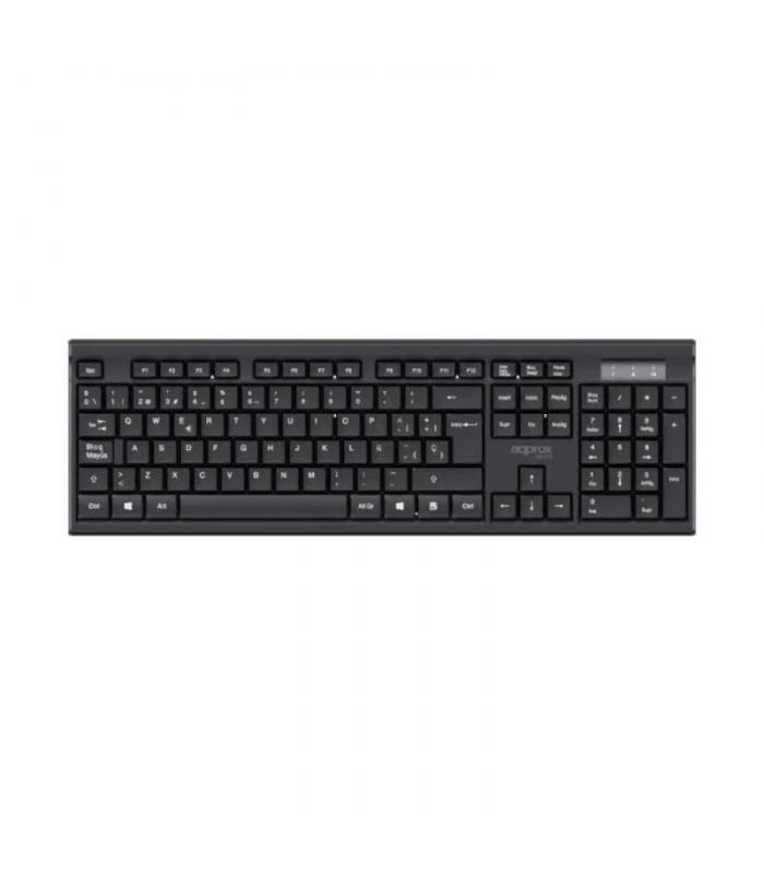 Teclado | - Inalámbrico - Frecuencia: 2,4 GHz - Diseño ligero y compacto - Teclas con tratamiento láser anti desgas-te de larga duración. - 105 Teclas - Distancia de funcionamiento: Hasta 10 m - Material Plástico ABS - Layout Español - Compatible con Windows, Linux y MAC OS - Funciona con una pila AAA (No incluida) Dimensiones y peso - 438,8 x 137,80 x 25,38 mm - 340 g |