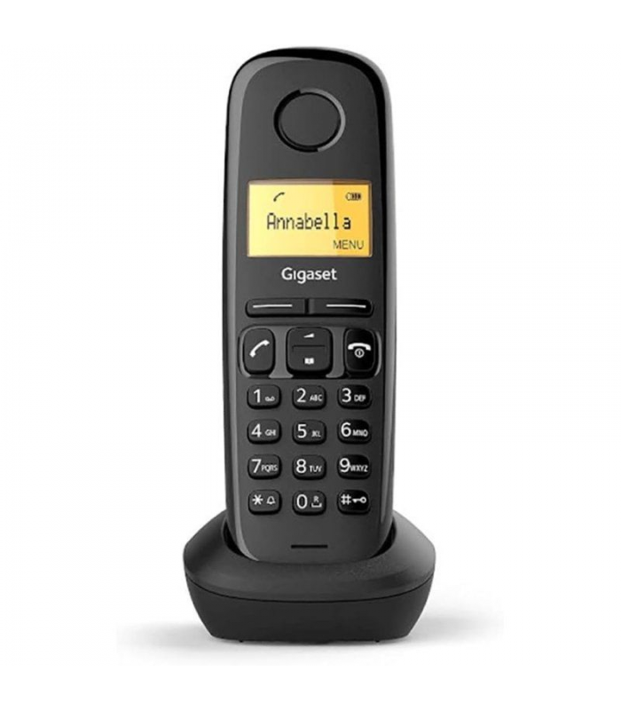 Descubra el Gigaset A170. Es un teléfono inalámbrico sencillo y fiable con calidad 'Made in Germany'. Presenta teclás fáciles de usar con puntos sensibles a la presión para marcar sin esfuerzo. Su gran pantalla gráfica de matriz de puntos iluminada facilita la lectura. Y gracias al registro preconfigurado en la estación base, la instalación no requiere más que un rápido plug & play. Y hay algo más de lo que no tendrá que preocuparse: el Modo Eco Plus sin radiación lo convierte en la opción ecológica de la telefonía
