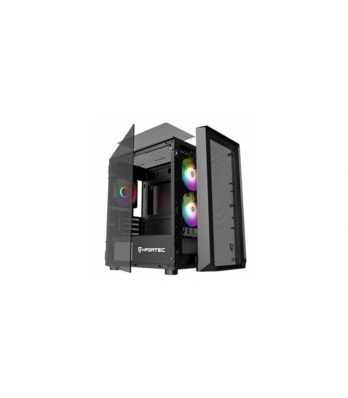 La Nfortec Dys es una caja de torre compacta y robusta, pensada para montajes gaming en formato Micro-ATX e ITX. Con un diseño moderno, panel lateral en cristal templado y hasta tres ventiladores RGB preinstalados, esta caja ofrece una excelente base para equipos potentes con una estética cuidada y buena ventilación. Ideal para quienes buscan un equilibrio entre diseño, rendimiento térmico y facilidad de montaje.