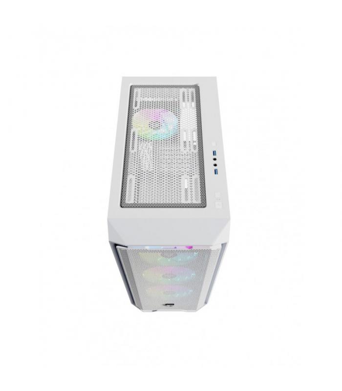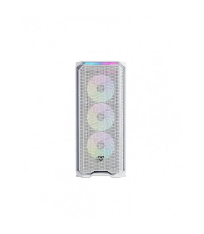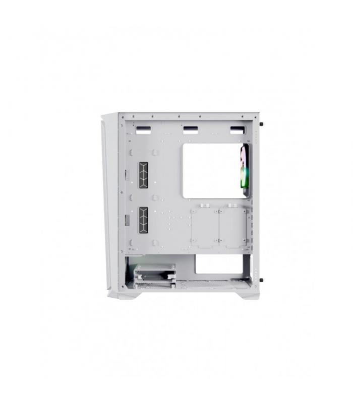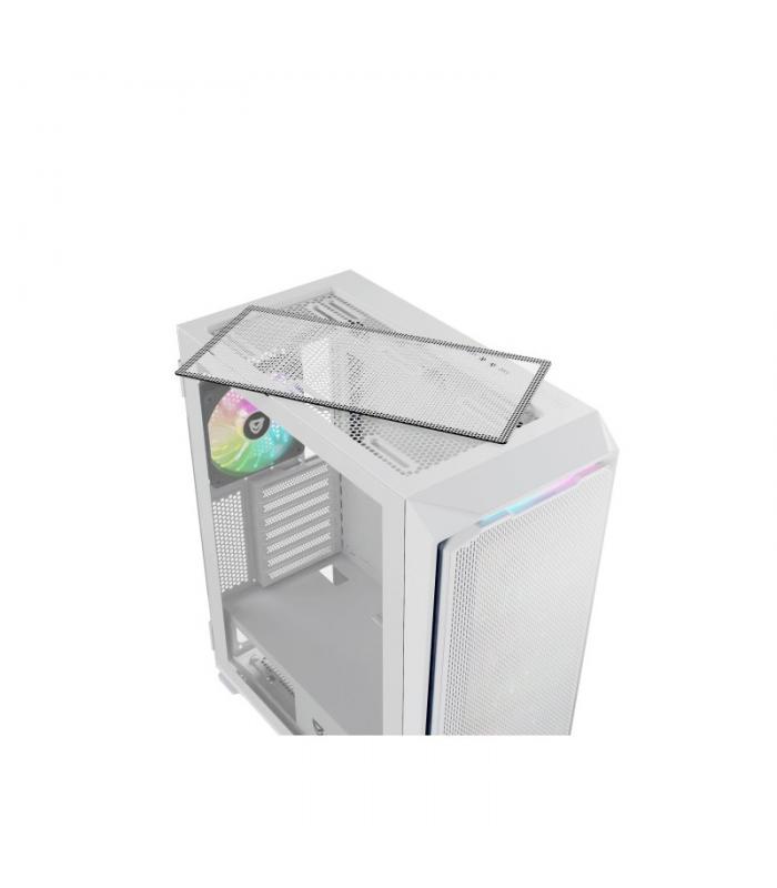 La caja viene equipada de serie con 4 ventiladores A-RGB de 120mm (3 frontales y 1 trasero), y ofrece espacio adicional para hasta 3 ventiladores superiores. Además, es compatible con sistemas de refrigeración líquida de hasta 360mm, lo que garantiza un alto rendimiento térmico incluso en sesiones de juego intensas.