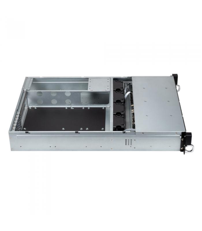Su factor de forma 2U está optimizado para montaje en armarios rack de 19", con **compatibilidad ampliada para placas base** de tipo EEB, CEB, ATX y micro ATX. La estructura está fabricada en acero SGCC de 1 mm de grosor, garantizando **resistencia y durabilidad**.