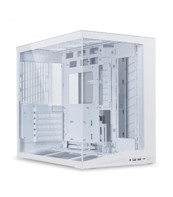 La Lian Li O11D Mini V2 incluye espacio para hasta cuatro unidades SSD de 2.5" o dos discos duros de 3.5", lo que la hace ideal para usuarios que buscan alto rendimiento sin sacrificar capacidad de almacenamiento. Además, incorpora un panel frontal completo con puertos USB 3.0, USB 3.2 Tipo C y conexión de audio, todo accesible desde el frontal para mayor comodidad.