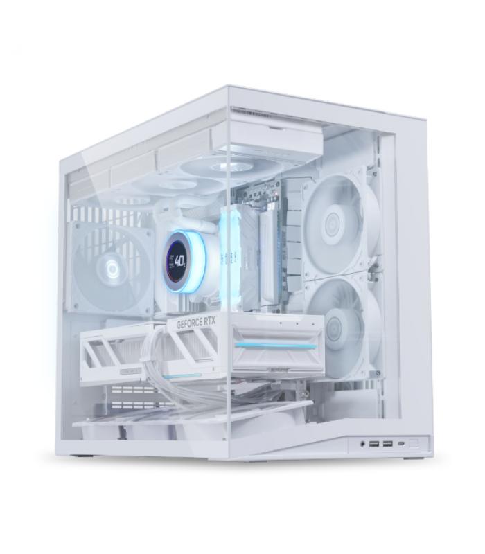 Esta torre ofrece una excelente capacidad de ventilación y refrigeración líquida, ideal para configuraciones exigentes. Es compatible con ventiladores de hasta 360 mm en la parte superior y permite instalar radiadores en posiciones estratégicas para optimizar el flujo de aire. Su diseño permite instalar GPUs de hasta 400 mm y refrigeradores de CPU de hasta 160 mm de altura, ofreciendo espacio suficiente para componentes de alto rendimiento.