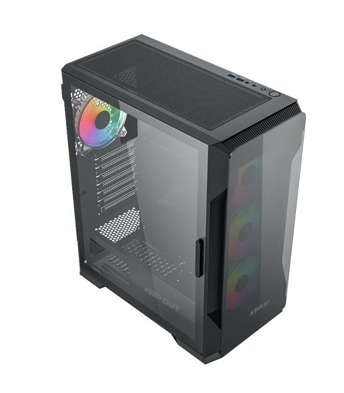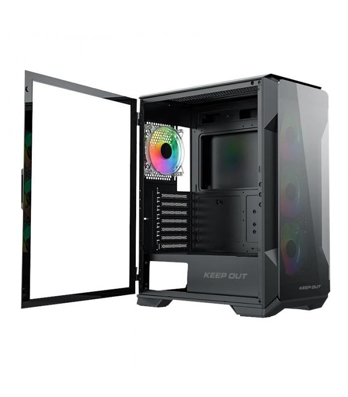 | Otras características | - Longitud máxima GPU: 315 mm - Altura máxima disipador CPU: 165 mm Material - Panel derecho: metal - Panel izquierdo: cristal templado de 3 mm con bisagra - Chasis: SPCC 0,6 mm Expansion - 7 x ranuras de expansión Diseño - Compatibilidad placas base: E-ATX / ATX / Micro ATX / ITX - E-ATX hasta 285 mm de ancho - Hub PWM + ARGB de 6 puertos incluido Puertos - 1 x USB 3.0 - 1 x USB Tipo C - 1 x Jack 3,5 mm audio - 1 x Jack 3,5 mm micrófono - Botón de encendido - Botón Reset / LED Sistema Ventilación - Ventiladores incluidos: 4 x 120 mm ARGB PWM - Soporte frontal: 3 x 120 mm (incluidos) / 2 x 140 mm - Soporte superior: 2 x 120 mm / 2 x 140 mm - Soporte trasero: 1 x 120 mm (incluido) - Soporte zona PSU: 2 x 120 mm - Soporte refrigeración líquida superior: 240 mm / 280 mm - Soporte refrigeración líquida frontal: 240 mm / 360 mm Dimensiones y peso - 396 x 210 x 490 mm - 5,5 kg |