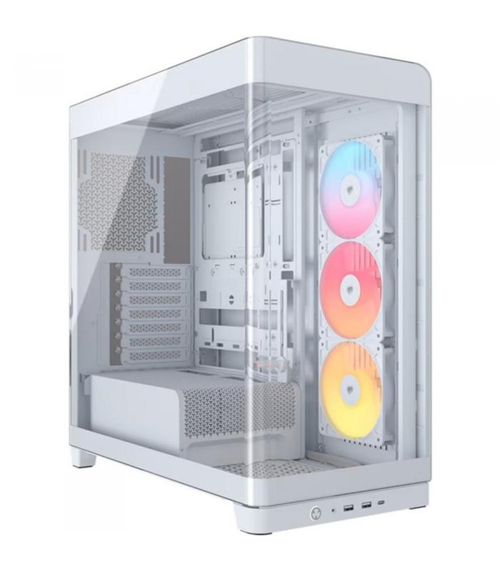 Su panel frontal y lateral de cristal templado de una sola pieza proporciona una vista envolvente del interior del equipo, resaltando cada componente. Este diseño no solo mejora la estética, sino que convierte tu PC en el centro visual del setup.