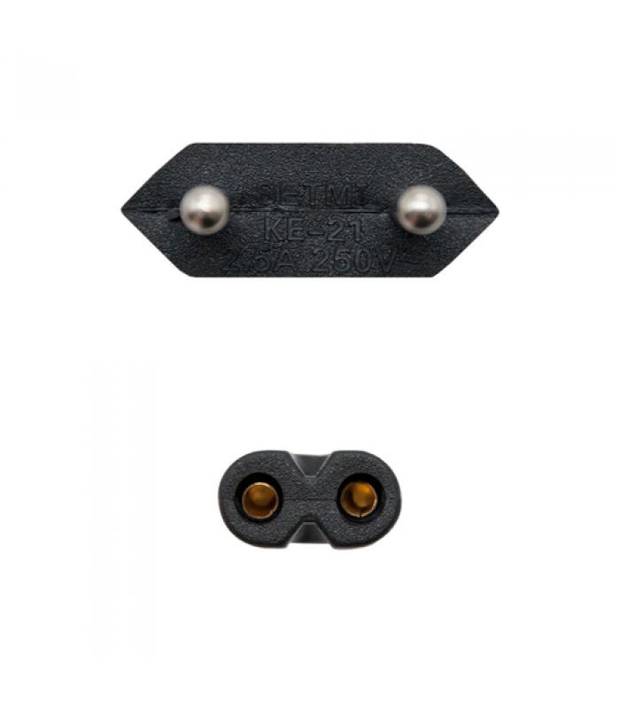 Cable de alimentación con forma 8 para cargar portátiles, equipos audiovisuales, consolas, y otros dispositivos electrónicos de baja potencia (consumo inferior a 1500W). Fabricado con conductor 100% cobre de AWG18.