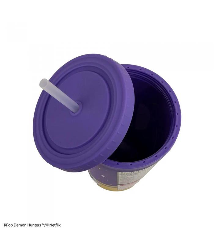 El diseño del vaso está completamente inspirado en la estética del personaje Rumi, con ilustraciones en colores brillantes y un estilo que recuerda a los envases de ramen asiático. Perfecto para coleccionistas o para quienes disfrutan de productos originales con referencias pop.