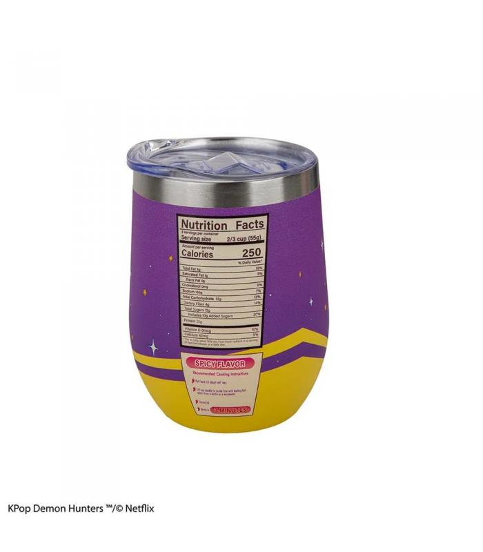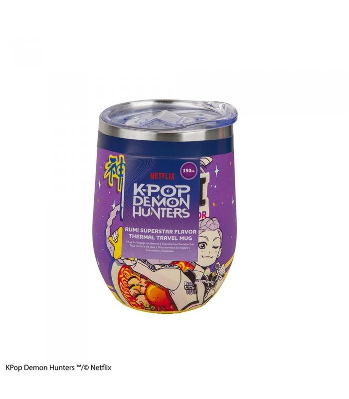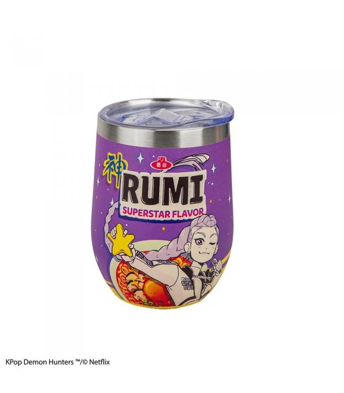 Inspirada en el universo vibrante de Kpop Demon Hunters de Netflix, esta taza isotérmica es el accesorio perfecto para fans del anime, el K-pop y los productos con diseño exclusivo. Con ilustraciones del personaje Rumi y detalles gráficos al estilo ramen pop-art, esta taza de viaje no solo conserva la temperatura de tus bebidas, sino que también destaca por su estética atrevida y coleccionable.